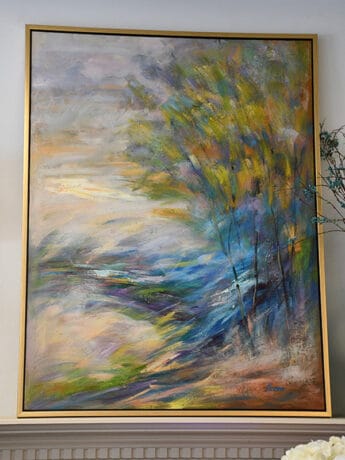 This colorful landscape piece is perfect addition to your home.