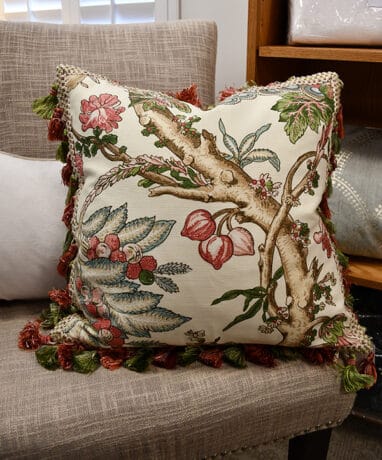 This custom-made throw pillow brings some subtle holiday flare to your home décor.