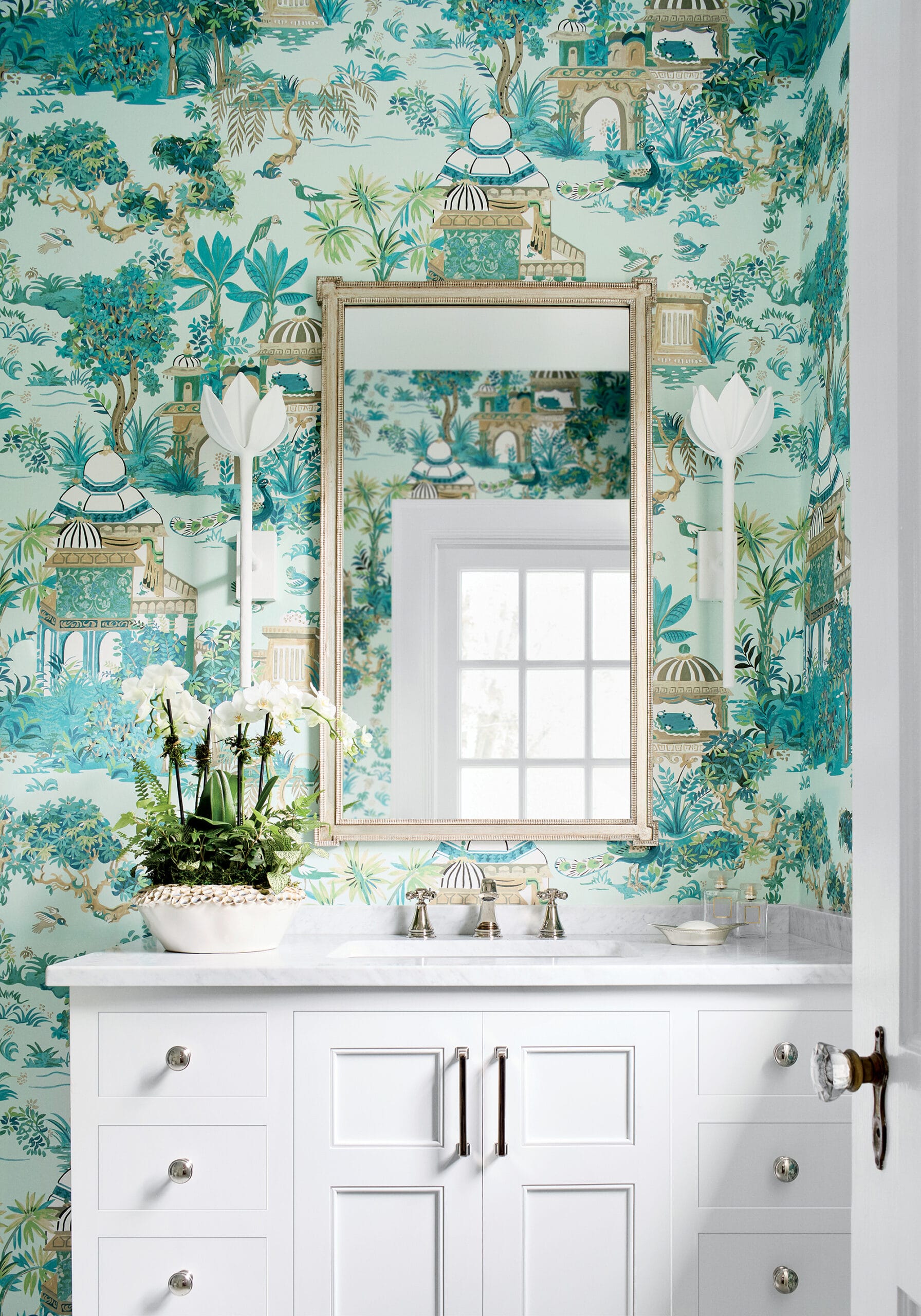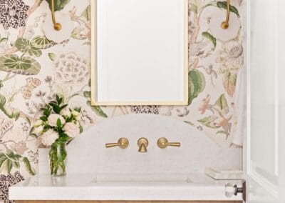 Wallpaper and window treatments have a transformative power in the bathroom, turning a purely functional space into something layered, personal, and quietly luxurious. A beautifully patterned wall covering, whether a soft botanical in muted neutrals or a more vibrant scenic motif, instantly sets the tone. It creates depth behind the mirror, elevates simple millwork, and allows classic fixtures in warm brass or polished nickel to feel intentional rather than expected. In a smaller powder room, especially, wallpaper acts almost like jewelry: an expressive detail that makes the space feel curated and complete without adding visual clutter.