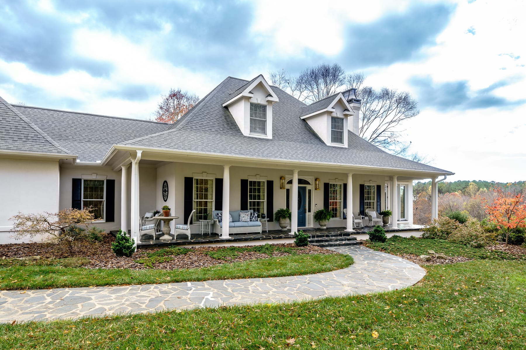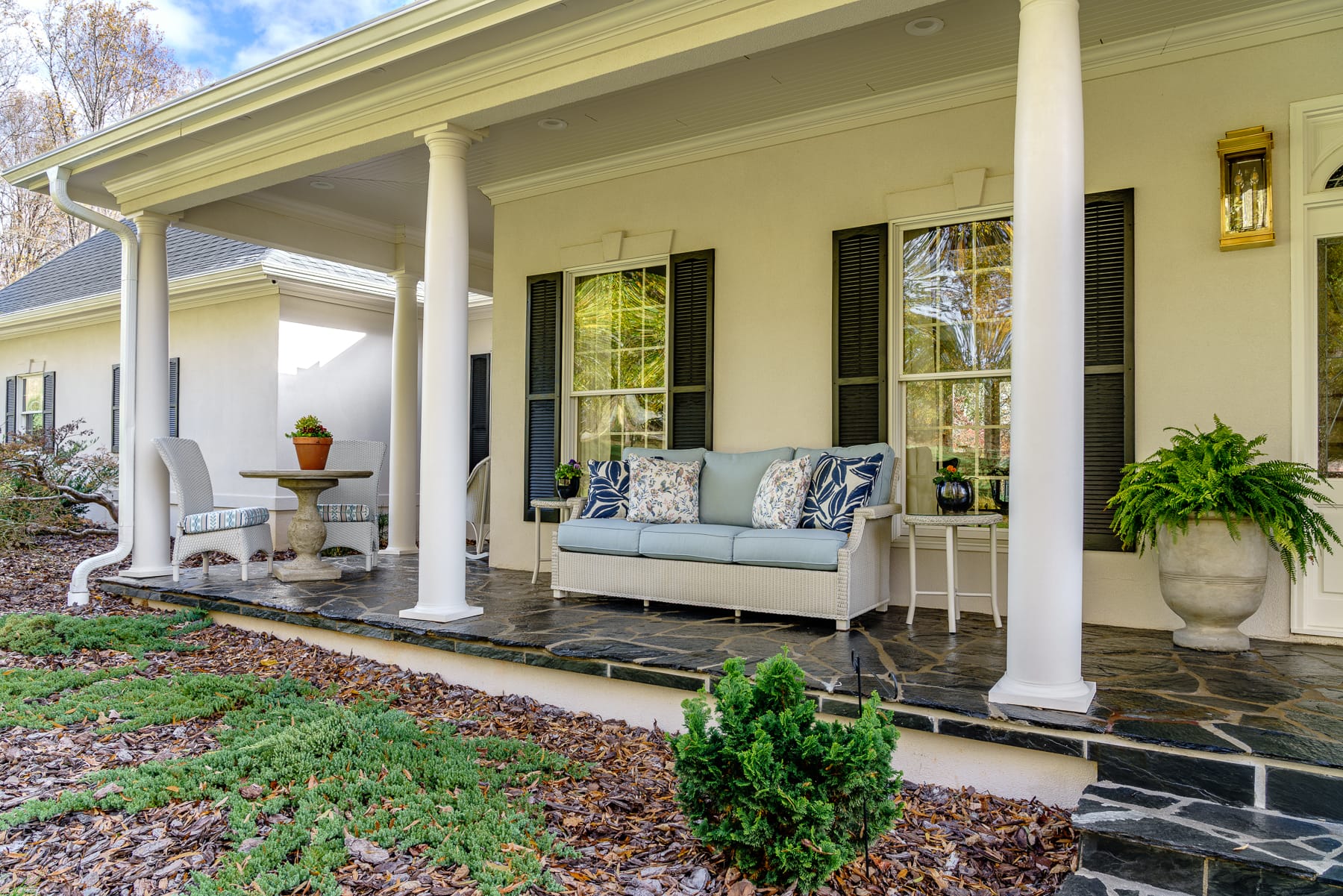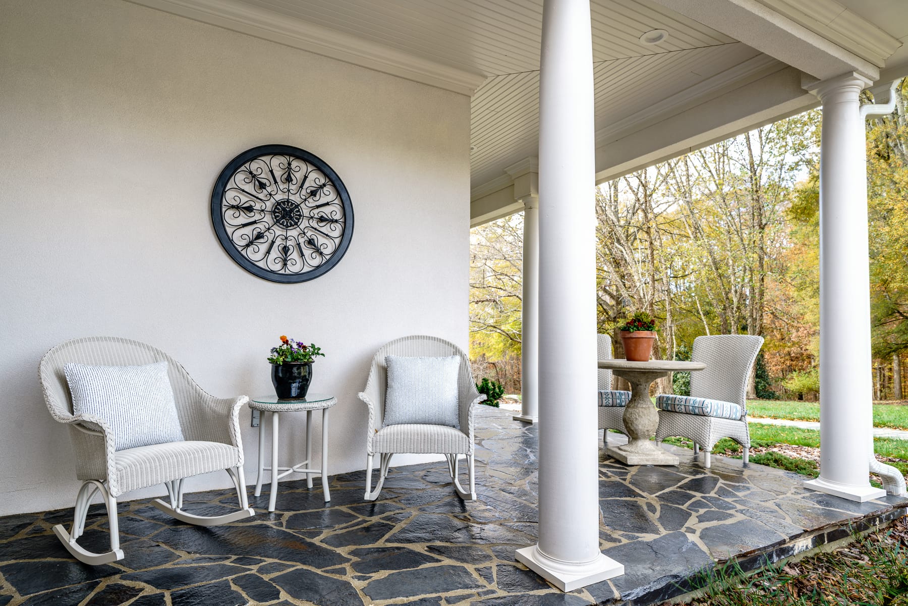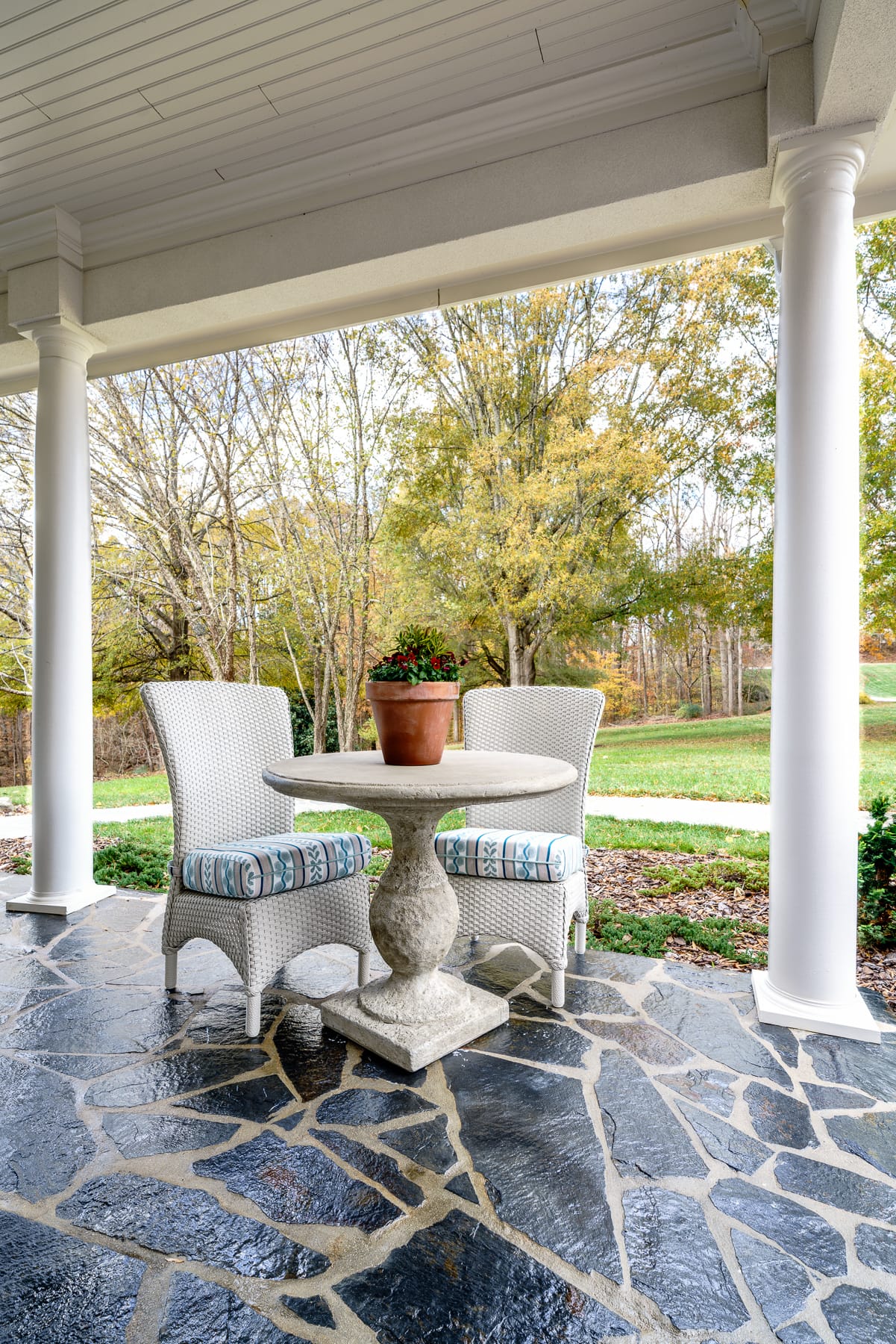 We were ecstatic about continuing the Elegant Escape & Estate Elegance project at East Bend that extended to our clients’ front porch. The vision we had in mind was creating a welcoming atmosphere that matched the remodeled front interior, encapsulating a peaceful oasis of cool toned hues and natural textures. This phase of the project was added on towards the end of the remodel, but we ensured that it felt cohesive with the rest of the design.