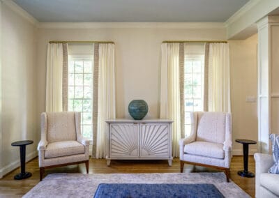 Designing window treatments is an art that goes far beyond simply covering a window—it’s about crafting a look and feel that’s entirely unique to each client. Every home has its own rhythm, and the right combination of fabrics, trims, and styles helps bring that to life. Whether it’s elegant drapery panels that add softness and sophistication or structured shades that offer function with a refined edge, each choice is made with careful attention to how the space is used and how the light moves through it. The goal is always to create harmony—balancing practicality with beauty so that the final result feels both intentional and effortless.